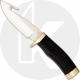 The illustrated Buck Knife is the Buck Zipper R Knife that features a 4 1/8" guthook skinner blade made of 420HC stainless steel. The black textured rubberized handle of this Buck knife has a satin finished brass guard and butt. A heavy duty black nylon belt sheath is included with this Buck knife. The Buck Zipper R Knife has an overall length of 8 1/2", and weighs 6.6 ounces.