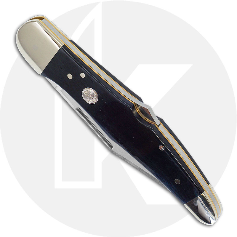 The 111011SGB Boker Folding Hunter Lock Blade Knife features a clip point blade made of Solingen carbon steel with a nail nick for opening. The contoured Smooth Gray Bone handle, 5 1/4 inches closed, has brass liners, round Tree shield, nickel silver bolsters and a lockback. Made in Germany; limited quantities.