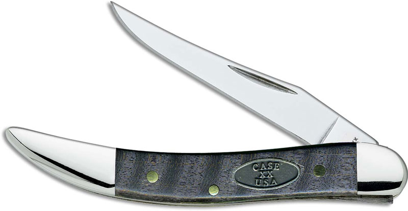 The Case Black Curly Maple (710096SS) Small Texas Toothpick Knife features a long clip blade made of Tru-Sharp surgical stainless steel with a nail nick for opening. The Smooth Black Curly Maple handle, 3 inches closed, has a pewter Oval Case USA shield and nickel silver bolsters. The Case Small Texas Toothpick Knife weighs 1.0 ounces. Made in the USA.