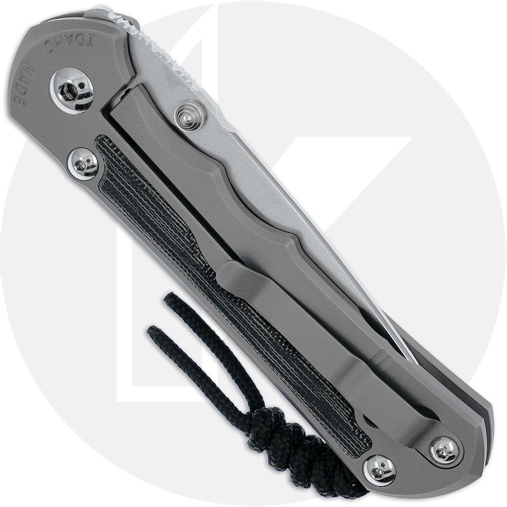 This LIN-1116 Large Inkosi Knife, designed by Chris Reeve and manufactured by Chris Reeve Knives, features a 3.6-inch Crucible MagnaCut stainless steel drop point blade, .14-inch thick, with a Rockwell hardness of 63-64. The blade has a special large hollow grind for strength, a tumbled finish, a notched thumb rest for secure grip, and dual titanium thumb studs for ambidextrous one hand opening. The glass blasted 6AL4V titanium handle, 4.8-inches closed, has black canvas Micarta inlays, a sturdy pivot with large pivot screw and pin, oversized bronze phosphor washers to eliminate sideways blade play, and the innovative Reeve Ceramic Ball End Integral Lock that uses a ceramic ball as an interface for the lock bar to the blade tang for consistent solid lock up. (The ball also drops into a detent on the blade to ensure the blade does not open accidentally.) The handle has open frame construction, a lanyard post, and a removable pocket clip mounted at the butt end. The Large Inkosi has an overall open length of 8.4-inches, and it weighs 4.96 ounces. Proudly made in the USA.