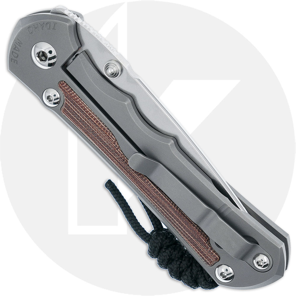This LIN-1118-006 Large Inkosi Knife, designed by Chris Reeve and manufactured by Chris Reeve Knives, features a 3.6-inch Crucible MagnaCut stainless steel drop point blade, .14-inch thick, with a Rockwell hardness of 63-64. The blade has a special large hollow grind for strength, a tumbled finish, a notched thumb rest for secure grip, and dual titanium thumb studs for ambidextrous one hand opening. The glass blasted 6AL4V titanium handle, 4.8-inches closed, has natural canvas Micarta inlays, a sturdy pivot with large pivot screw and pin, oversized bronze phosphor washers to eliminate sideways blade play, and the innovative Reeve Ceramic Ball End Integral Lock that uses a ceramic ball as an interface for the lock bar to the blade tang for consistent solid lock up. (The ball also drops into a detent on the blade to ensure the blade does not open accidentally.) The handle has open frame construction, a lanyard post, and a removable pocket clip mounted at the butt end. The Large Inkosi has an overall open length of 8.4-inches, and it weighs 4.96 ounces. Proudly made in the USA.