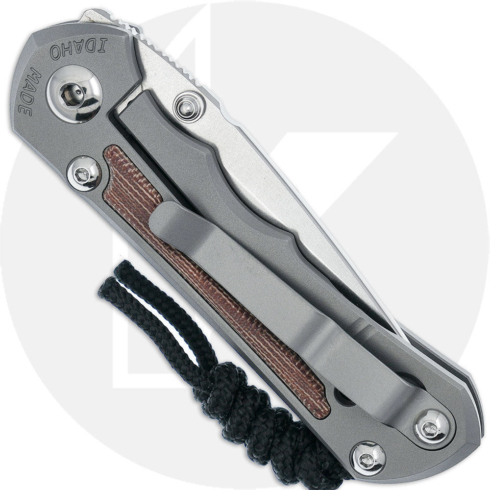 The SIN-1118-006 Chris Reeve Small Inkosi features a 2.80-inch drop point blade made of premium CPM MagnaCut stainless steel, .13 inch thick, with a stonewash finish, a notched thumb rest for secure grip, and a thumb stud for one hand opening. The ergonomic titanium handle, 3.76-inches closed, has a glass blasted finish, Natural Canvas Micarta inlays, sturdy Reeve Integral Lock with Ceramic Ball Interface for smooth opening, a lanyard, and an offset titanium pocket clip mounted at the butt end. The Small Inkosi has an overall open length of 6.56-inches, and it weighs 3.0 ounces. Proudly made in the USA.