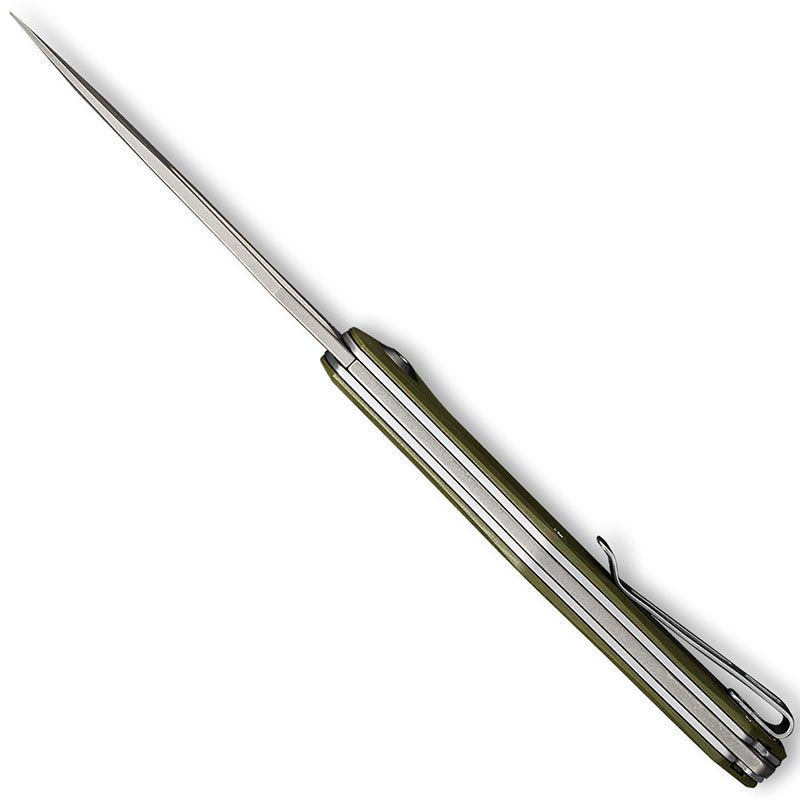 The C2009A CIVIVI Fracture is a Slip Joint tactical folder, produced by CIVIVI (a subsidiary of WE Knife Company), that features a 3.35 inch non locking drop point blade made of 8Cr14MoV stainless steel, .10 inches thick, with a Rockwell hardness of 56-58, a hollow grind, non reflective gray stonewash finish and a large thumb hole for ambidextrous one hand opening. The OD green G10 handle, 4.39 inches closed, has chamfered edges for comfort, gray stainless steel liners and backspacer for strength, large lanyard hole, and a side to side reversible stainless steel pocket clip mounted at the butt end. This WE CIVIVI Fracture Knife has an overall open length of 7.74 inches, and it weighs 2.98 ounces. Made in China.