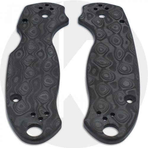 These Knives Plus replacement scales for the Spyderco Para 3 are precision milled from carbon fiber with an eye catching damascus pattern. These scales were created to replace the original Spyderco G10 scales.
