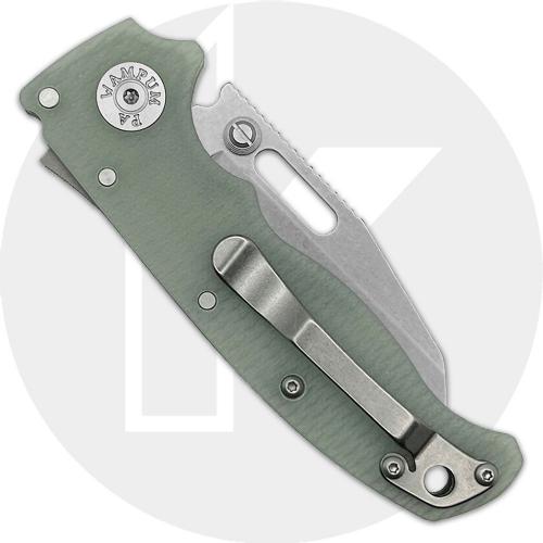 The Demko AD20.5 Knife is an innovative EDC, designed by Andrew Demko, that features his patented Shark-Lock. This AD20.5 has a 3.25 inch Shark Foot (sheepfoot) blade made of CPM S35VN stainless steel, .13 inches thick, with a 3 inch cutting edge, a stonewash finish, jimped thumb rest for precise control, an oval hole and dual thumb studs for ambidextrous one hand opening. The textured natural G10 handle, 4.50 inches closed, has a caged ball bearing pivot for smooth action, steel liners for strength, the patented Shark-Lock, a lanyard hole and a removable steel pocket clip mounted at the butt end (a pocket clip for left hand carry is included). This Demko AD20.5 Knife has an overall open length of 7.625 inches, and it weighs 3.7 ounces. Made in Taiwan.