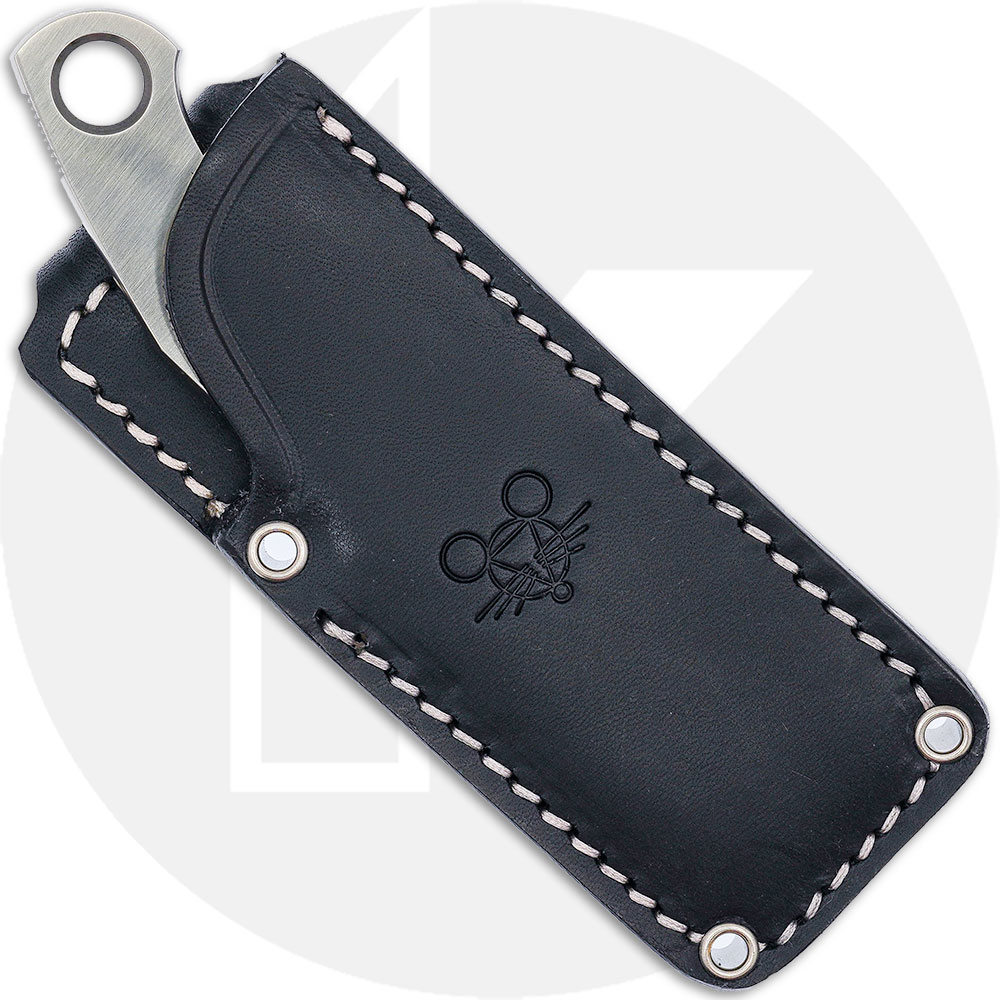 The GiantMouse GMF1 stands as the ultimate EDC utility fixed blade. This compact and remarkably lightweight fixed blade knife features Bohler N690 stainless steel with a satin finish. Its 2.4-inch blade seamlessly extends from the handle, which incorporates three holes to reduce unnecessary weight. Enhanced with jimping along the spine and choil, it offers ample grip and control in any weather conditions. With a total length of 5.2-inches and weighing a mere 2.0 ounces, the GMF1-S comes complete with a handmade black leather sheath. If you seek a fixed blade that can rival your EDC folder, look no further. Expertly crafted in Maniago, Italy.