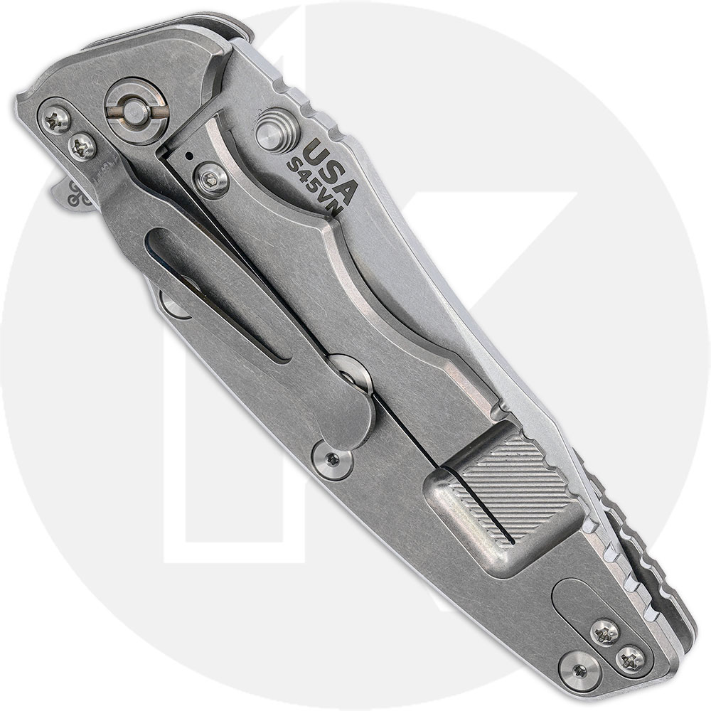This Hinderer Eklipse Folder, designed by Rick Hinderer and manufactured by Hinderer Knives, features a 3.5-inch spear point blade made of CPM S45VN stainless steel, .165-inch thick, with the Hinderer stonewash finish. The blade has a notched thumb rest for secure purchase, a press fit 1/4-inch diameter ambidextrous thumb stud (that locks up against the frame for superior strength against sideways torque) and a flipper for one hand opening. The ergonomic handle, 4.75-inches closed, has the innovative Tri-Way Pivot System that enables the end user to switch between nylon teflon, phosphorus bronze and ball bearing pivot as needed or preferred. This Eklipse has a non lock side titanium liner with a textured FDE G10 scale for secure grip, a stonewash finish CNC machined 6AL4V titanium back with frame lock and Hinderer Lockbar Stabilizer, open frame construction with large standoffs for strength and ease of cleaning, and an end to end reversible pocket clip. The Hinderer Eklipse 3.5-Inch Folder has an overall open length of 8.25-inches, and it weighs 5.6 ounces. Proudly made in the USA.