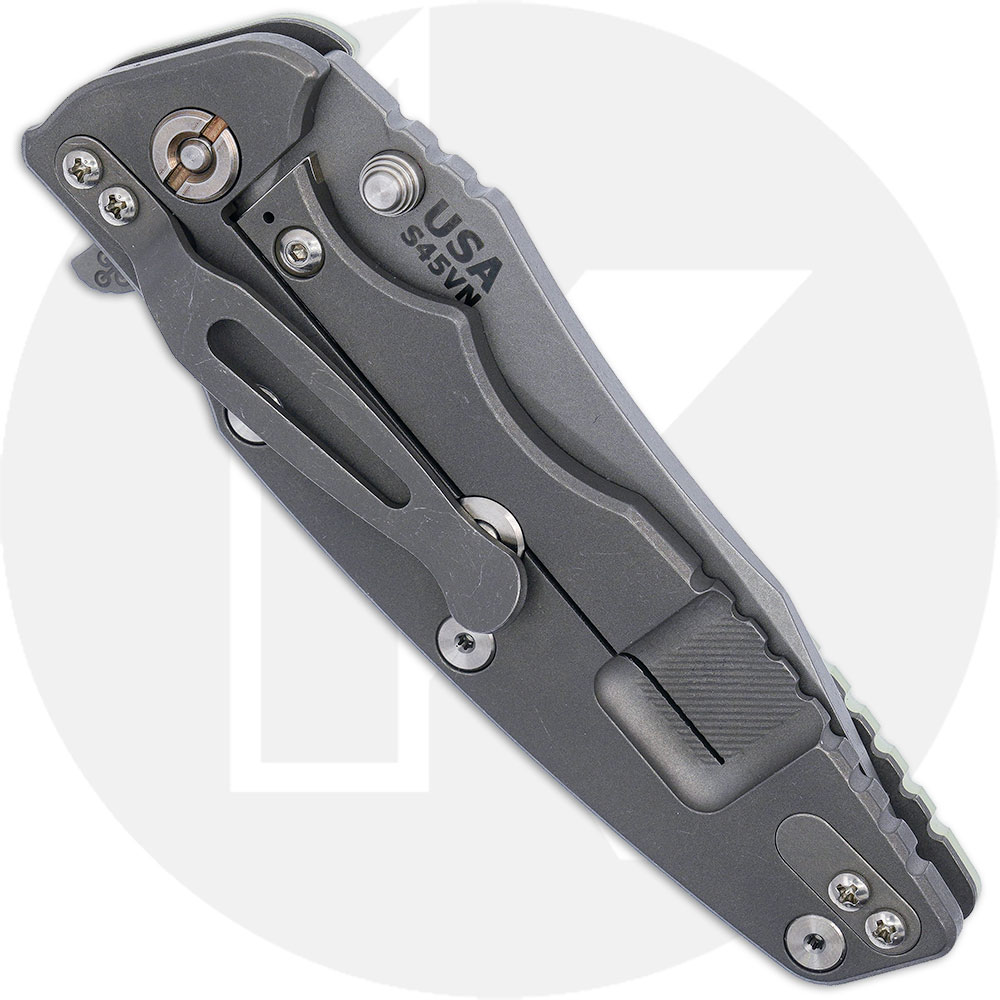 This Hinderer Eklipse Folder, designed by Rick Hinderer and manufactured by Hinderer Knives, features a 3.5-inch slicer blade made of CPM S45VN stainless steel, .165-inch thick, with the Hinderer working finish. The blade has a notched thumb rest for secure purchase, a press fit 1/4-inch diameter ambidextrous thumb stud (that locks up against the frame for superior strength against sideways torque) and a flipper for one hand opening. The ergonomic handle, 4.75-inches closed, has the innovative Tri-Way Pivot System that enables the end user to switch between nylon teflon, phosphorus bronze and ball bearing pivot as needed or preferred. This Eklipse has a non lock side titanium liner with a textured translucent green G10 scale for secure grip, a working finish CNC machined 6AL4V titanium back with frame lock and Hinderer Lockbar Stabilizer, open frame construction with large standoffs for strength and ease of cleaning, and an end to end reversible pocket clip. The Hinderer Eklipse 3.5-Inch Folder has an overall open length of 8.25-inches, and it weighs 5.1 ounces. Proudly made in the USA.