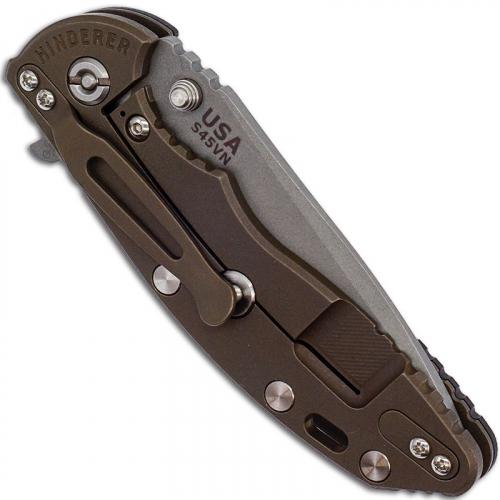 Hinderer Knives: XM-18, 3.5 Inch Working Finish Spanto, Battle Bronze Ti and Black G10, RH-XM18117