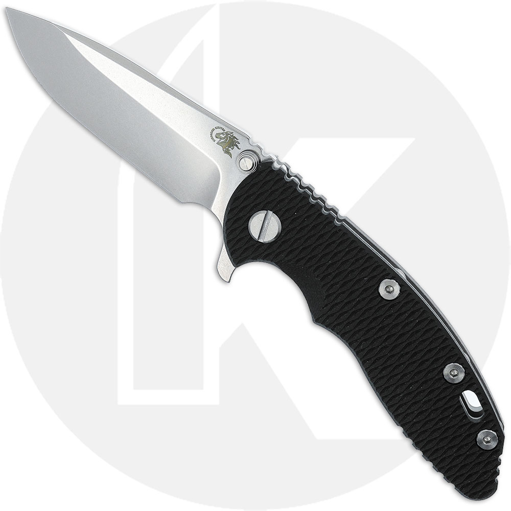 This Hinderer XM-18 3.25 Inch features a 3.25-inch spear point blade made of premium S45VN stainless steel, .165-inch thick, with a Stonewash Finish, a notched thumb rest for secure purchase, a press fit ambidextrous thumb stud that locks up against the frame for superior strength against sideways torque, and a flipper for fast opening. The ergonomic handle, 4.5-inches closed, has the innovative Tri-Way Pivot System that enables the end user to switch between nylon teflon, phosphorus bronze and ball bearing pivot as needed or preferred. This XM-18 3.25 has a non lock side with titanium liner and textured black G10 scale for secure grip, CNC machined 6AL4V titanium back with a Working Finish, sturdy frame lock and Hinderer Lockbar Stabilizer, open frame construction with large standoffs for strength and ease of cleaning, a lanyard hole and an end to end reversible pocket clip. The Hinderer XM-18 3.25 Inch spear point has an overall open length of 7.5-inches, and it weighs 4.8 ounces. Proudly made in the USA.
