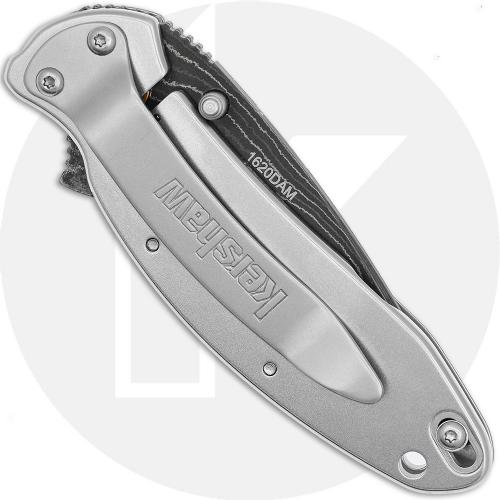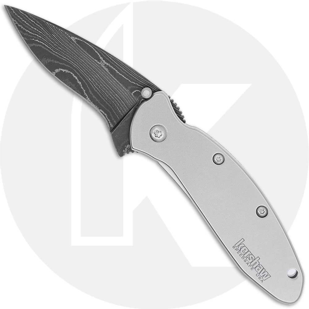 This Kershaw Scallion features a 2 1/4 inch damascus blade, dual thumb studs, ambidextrous Index Finger Opening extension and Speed-Safe assist. It has an aluminum handle, 3 1/2" closed, with liner lock, blade safety (located at the butt end: slide button to free the blade tip), lanyard hole and pocket clip. This Scallion weighs in at 2.7 ounces. Made in the USA.