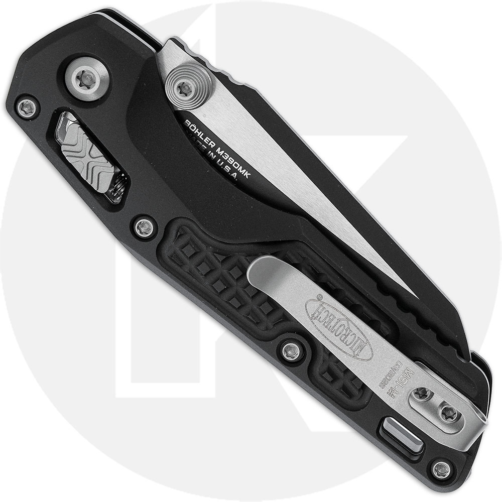 Introducing the Microtech Standard Issue (MSI) Mini. This folder features a 3.2-inch 2-tone black/satin sheepsfoot blade crafted from Microtech's exclusive Bohler M390MK stainless steel, paired with a 4.25-inch black frag pattern aluminum handle. The blade ensures superior edge retention and precision cutting, while the handle provides excellent, ergonomic grip in any weather condition. Equipped with RAM-LOK for secure blade lock-up, steel liners, a lanyard hole, stainless hardware, a reversible pocket clip, and dual thumb studs for easy opening, the MSI offers outstanding strength and ambidextrous functionality. Weighing 3.6 ounces, this rugged knife is well-suited for any cutting task. Proudly made in the USA.