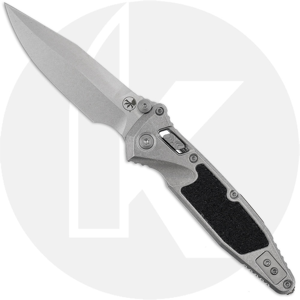 Introducing the Microtech Socom RAM-LOK™ Marfione Select. This model features a spear point blade, 3.8-inches, has a stonewash finish and dual thumb studs for easy, ambidextrous opening. The handle, 5-inches, is made of stonewashed titanium with textured inlays, bronze titanium accents, double vapor blast stainless hardware, a sturdy RAM-LOK™, and a glass-breaker tip. Weighing in at 5.2 ounces, the Socom is perfect for EDC or as an addition to your collection. Made in the USA.