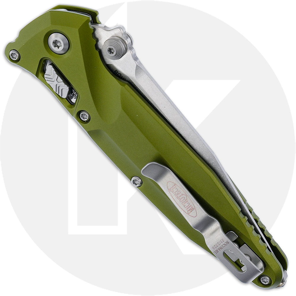 Introducing the Microtech Socom Delta knife. This model is inspired by and named after the renowned United States Special Operations Command. The spear point blade, 3.8-inches, has a stonewash finish and a thumb stud for easy, ambidextrous opening. The handle, 5-inches, is made of OD green anodized aluminum and houses the RAM-LOK™, side-to-side reversible deep carry pocket clip, and a glass-breaker tip. Weighing in at 4.5 ounces, the Socom Delta embodies its namesake and is the perfect investment for any environment. Made in the USA.
