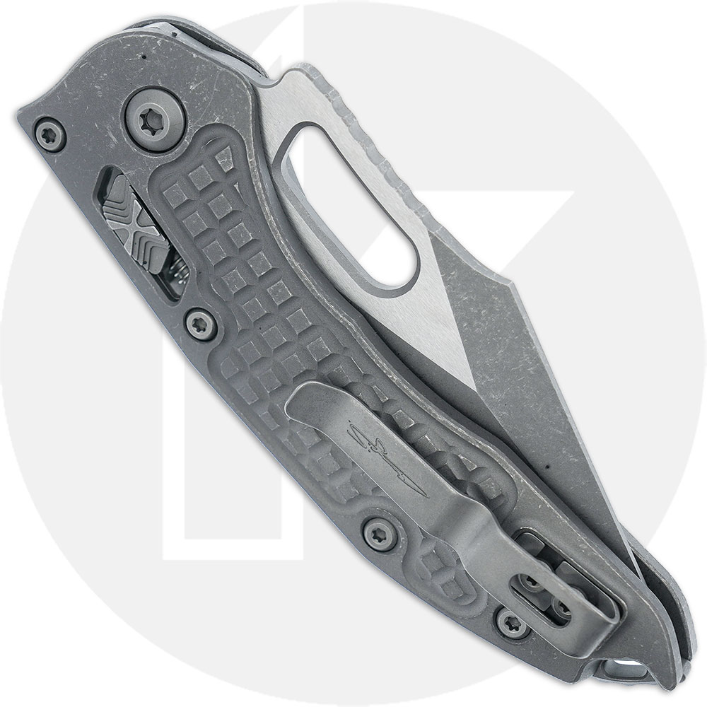 Introducing Microtech's manual Stitch knife. This Stitch features a 3.75-inch Apocalyptic part serrated spear point blade and a 5-inch Apocalyptic finish frag pattern titanium handle. Crafted from Microtech's exclusive Bohler M390MK stainless steel, the blade offers enhanced edge retention and impeccable cutting performance, while the handle offers exceptional ergonomics. With the RAM-LOK ensuring secure blade lock-up, steel liners, a titanium backspacer with a lanyard hole, a reversible pocket clip, and a thumb hole for easy opening, the Stitch delivers remarkable strength and ambidextrous functionality. Weighing 7.5 ounces, this robust knife is perfectly suited for tackling any cutting task. Proudly made in the USA.