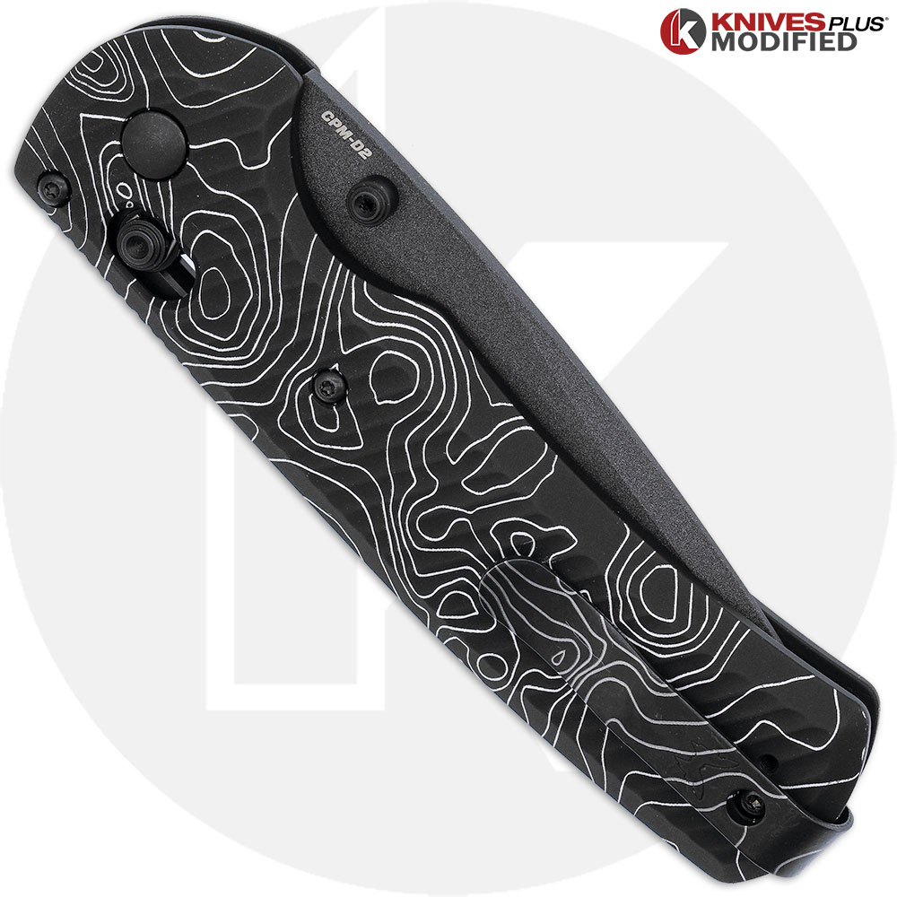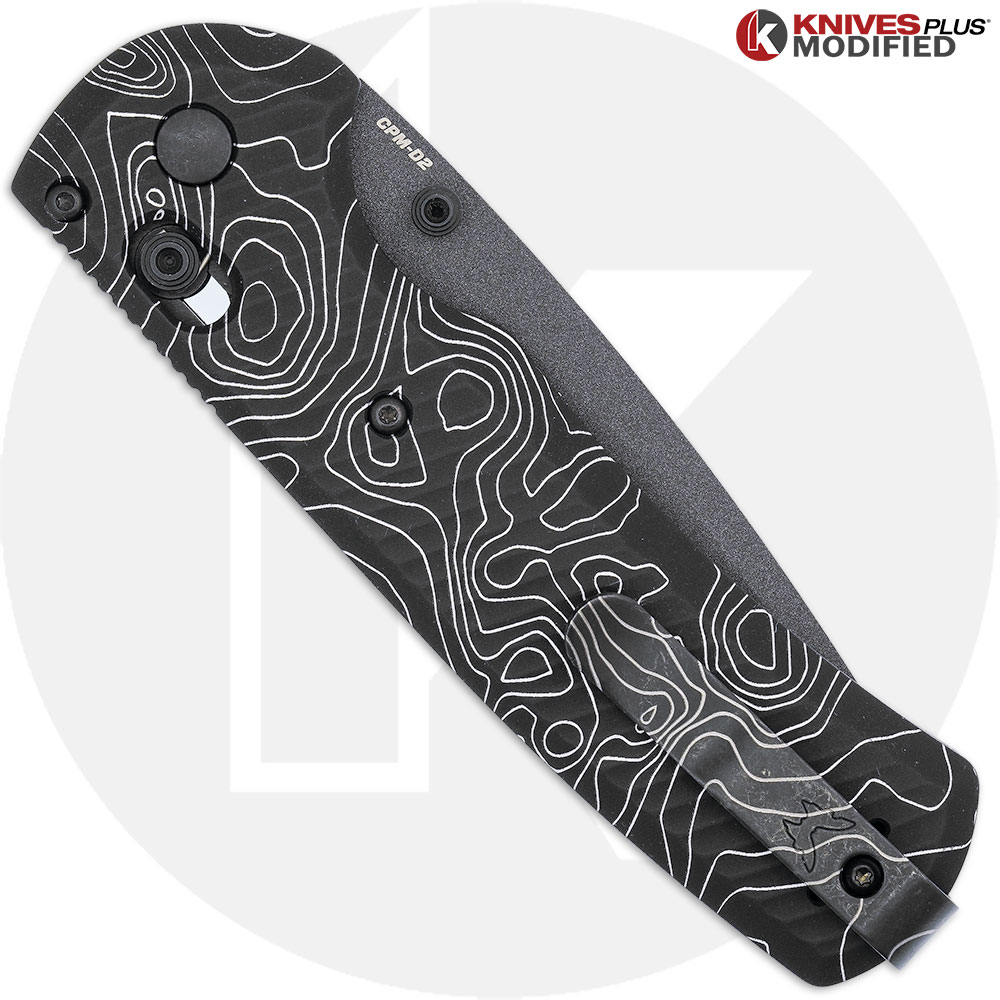 The MODIFIED 431BK Benchmade Redoubt is a workhorse of an EDC that features a 3.53-inch tanto blade made of tough CPM-D2 tool steel, with a Rockwell hardness of 60-62. The blade has a non reflective black finish, a top swedge to lessen weight, and dual black thumb studs for ambidextrous one hand opening. The green Grivory® handle has been replaced with the AWT Archon Redoubt Black scales. The scales have been given the topo treatment along with the pocket clip! The Redoubt is 4.75-inches closed with a sturdy AXIS Lock and a deep carry black mini clip mounted at the butt end. This Benchmade Redoubt Knife has an overall open length of 8.27-inches and weighs 4.4 oz. Benchmade and AWT are proudly made in the USA.