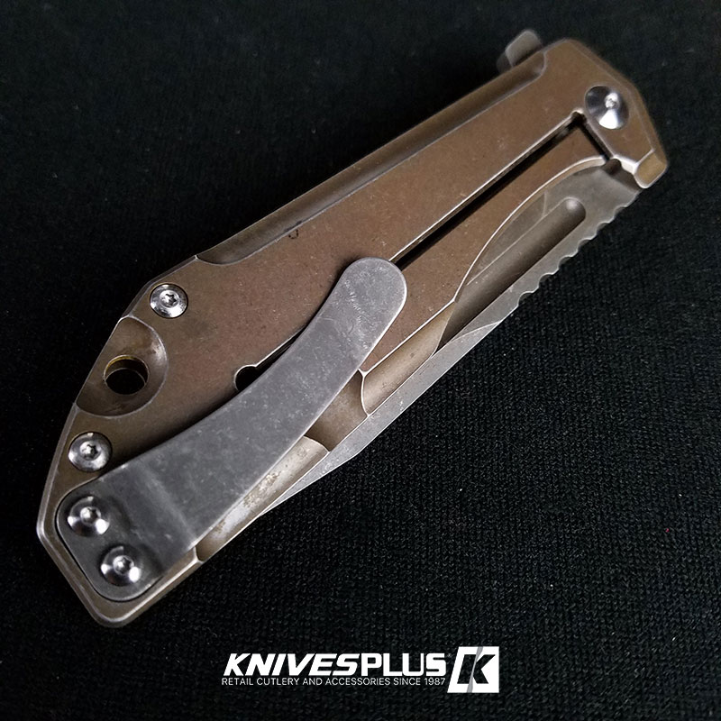 ***These knives have been modified by the KnivesPlus Team. We take great care in our modifying process to guarantee that they function as intended. Some of our modifications include acid washing, anodizing, regrinding, and customizing backspacers. All blades have been re-sharpened and are guaranteed to shave.