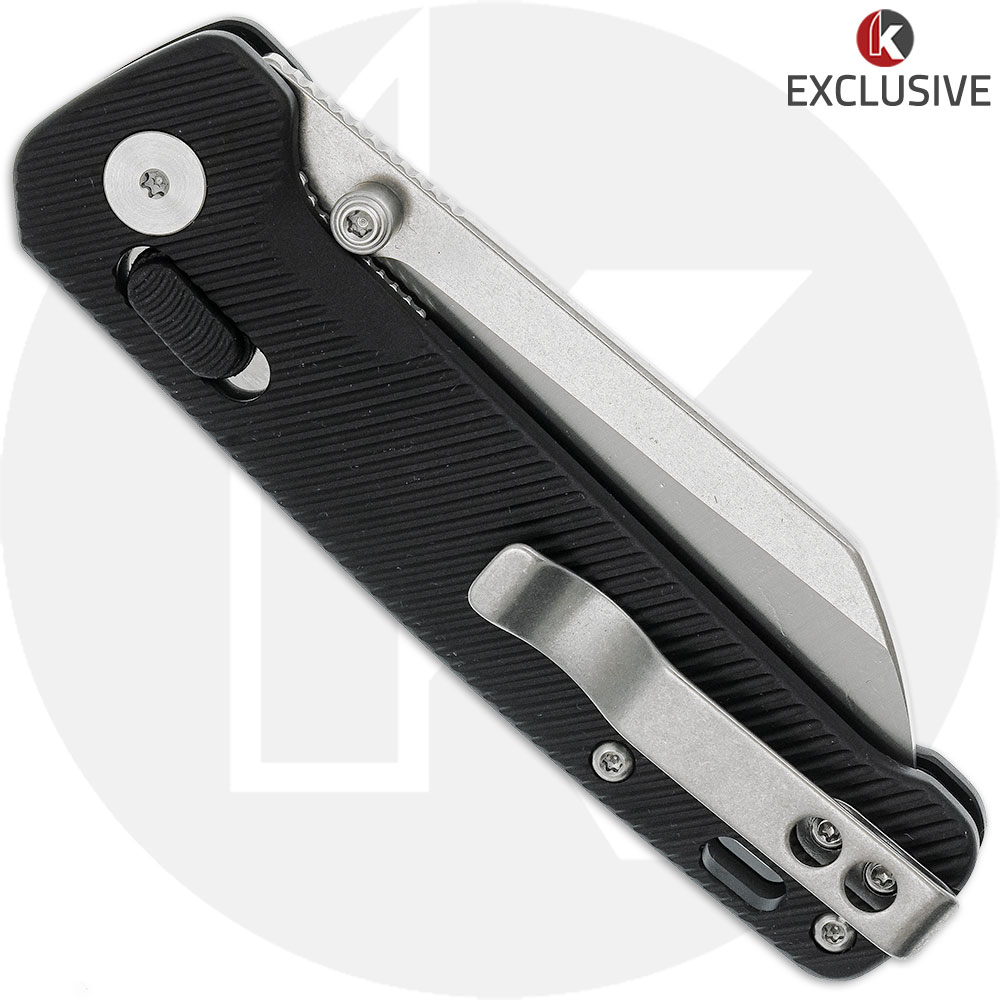 The QS130GL-KPA QSP Penguin is a Knives Plus Exclusive knife that features a 3.06-inch sheepsfoot blade made of CPM S35VN stainless steel with a 2 tone finish, a notched thumb rest for secure grip, and dual thumb studs for ambidextrous one hand opening. The black Aluminum handle, 4.00-inches closed, features the Glyde Lock mechanism with a black FRN button, stainless steel liners for strength, a lanyard hole, and a side to side reversible deep carry stainless steel pocket clip mounted at the butt end. This QSP Penguin Knife has an overall open length of 7.06-inches, and it weighs 3.1 ounces. Made in China.