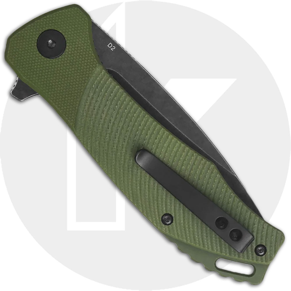 The QS122-B2 QSP Raven is an eye catching value price EDC that features a 3.375 inch drop point blade made of Chinese D2 tool steel with a black stonewash finish, a notched thumb rest for secure grip, and a flipper for ambidextrous one hand opening. The ergonomic green G10 handle, 4.50 inches closed, has a pivot with ceramic ball bearing support for smooth opening, sturdy liner lock, notched back spacer with integral lanyard hole, and a stainless steel pocket clip mounted at the butt end. The QSP Raven Knife has an overall open length of 7.875 inches, and it weighs 4.2 ounces. Made in China.