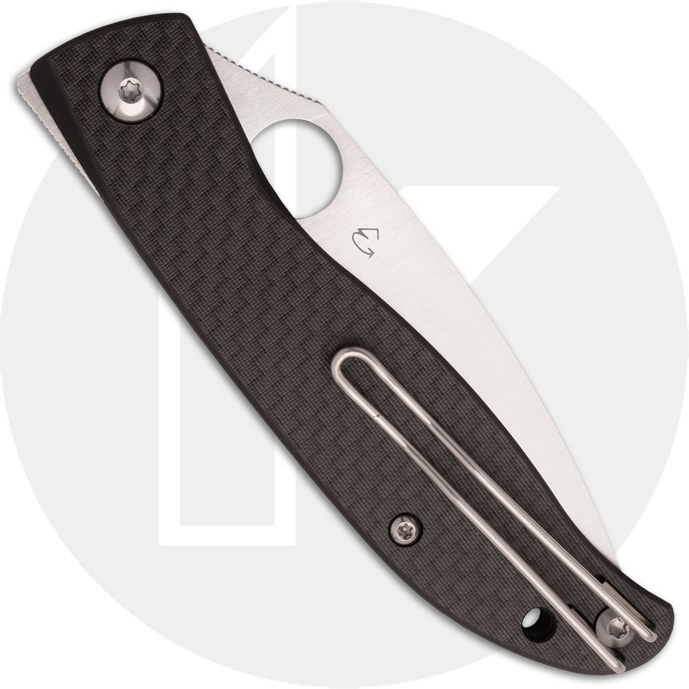 The C274CFP Spyderco Mantra 4 knife is a 4th generation elegant, slim profile EDC that features a 3.34-inch drop point blade made of 8Cr13MoV stainless steel, .089-inch thick, with a full flat grind, a notched thumb ramp for secure grip, Spyderco Trademark Round Hole and a front-flipper for ambidextrous one hand opening. The Carbon Fiber/G10 Laminate handle, 4.27-inches closed, has Ball Bearing Washers for smooth opening, a single nested stainless steel liner, a Liner Lock, a lanyard hole, and a side to side reversible wire deep-carry pocket clip mounted at the butt end. The Spyderco Mantra 4 Knife has an overall open length of 7.5-inches, and it weighs 2.1 ounces. Made in China.