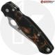 The illustrated Spyderco Knife is the Spyderco Para Military 2 Knife that features a 3.42 inch modified clip point blade made of CPM S45VN stainless steel. The blade of this Spyderco Knife has a satin finish, a notched choil and thumb ramp for secure grip, and the Spyderco hole for ambidextrous one hand opening. The contoured, textured black G10 handle has been replaced with AWT (Applied Weapons Tech) CUSTOM ANODIZED aluminum scales. The Paramiliary has a closed length of 4.82 inches, nested Compression Lock, and a lined lanyard hole. Ambi tip-down carry. The Spyderco Para Military 2 Knife with black blade has an overall length of 8.24 inches when open, and it weighs 4.5 ounces. Made in the USA.