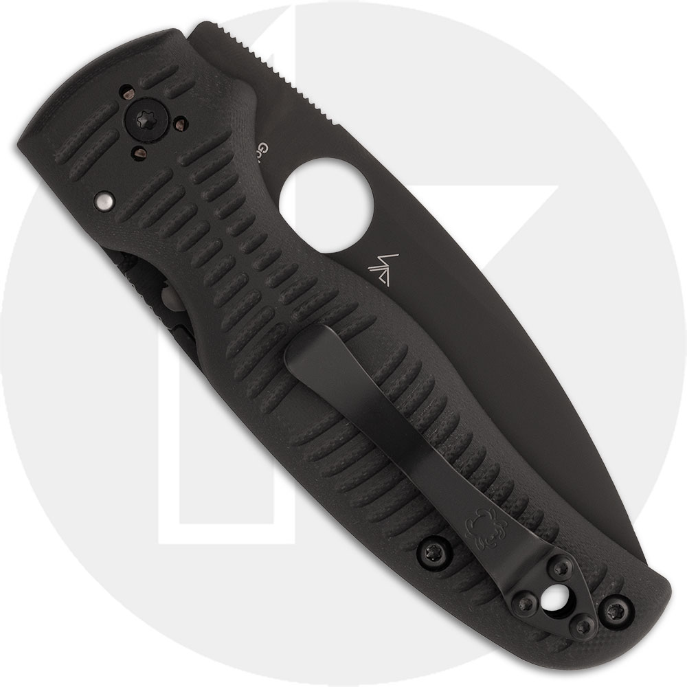 Introducing Spyderco's 2025 addition to the Shaman family. This Shaman is a member of the Spyderco Salt line-up featuring a 3.61-inch leaf shaped blade made of CPM MagnaCut stainless steel, .145-inch thick, with a non reflective black DLC (Diamond Like Carbon) finish and a black G10 handle. This model boasts the Shaman's well known features including finger choil, jimping, 4-way reversible clip, Compression Lock, nested stainless steel liners, and lanyard hole while integrating the Salt Series corrosion resistant design. The Spyderco Shaman Knife has an overall open length of 8.31-inches, and it weighs 5.2 ounces. Made in the USA.