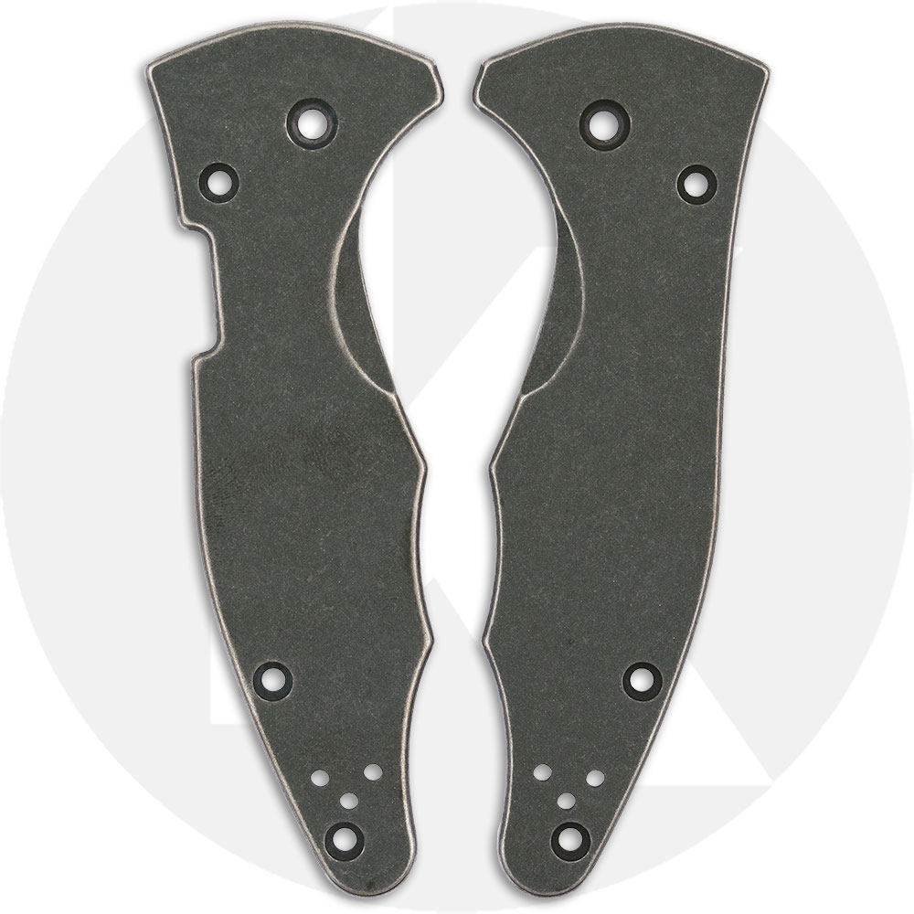 The Knives Plus replacement titanium scales for the Spyderco Yojimbo 2 are precision milled from 6AL4A titanium and feature a Panzer green cerakote and stonewashed finish. These scales were created to replace the original Spyderco G10 scales. Made in China.