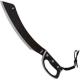 The illustrated Woodman's Pal is the Woodman's Pal Premium that features an 11 1/2" fixed blade made of tempered high carbon manganese steel, 1/8" thick, with a Rockwell hardness of 47. The blade of this Woodman's Pal has a non reflective black oxide coat for rust and corrosion resistance, a primary edge that can cut wood up to 1 1/2" diameter with a single stroke, and a unique sickle hook for clearing vines, briars and unwanted growth at ground level. The military style leather handle of this Woodman's Pal is contoured for a snug fit and it comes with a steel D guard for safety. The Woodman's Pal Premium has an overall length of 16 1/2" and it weighs 25.1 ounces. Handcrafted in Boyertown, PA of all American raw materials.