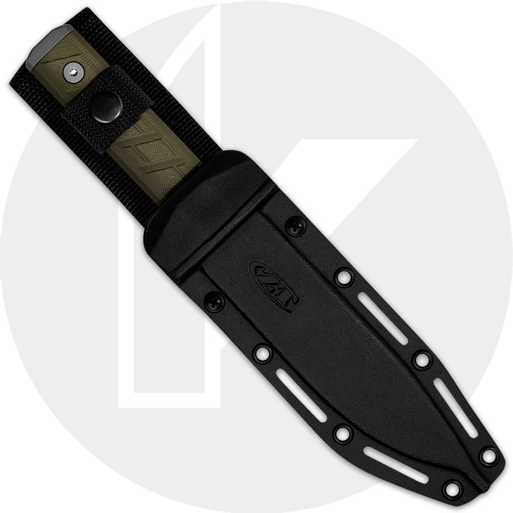 Introducing the Zero Tolerance 0006 Field Knife. This military-inspired fixed blade is an ideal tool for outdoor activities, survival, or summer projects. The 0006, named after its 6-inch blade, utilizes CPM 3V, a tough tool steel that offers exceptional resistance against edge chipping during the most strenuous work tasks. Although this non-stainless steel isn't designed for corrosion resistance, ZT has coated it with clear Cerakote for increased durability. The 3/16-inch-thick blade is hefty but functional, with a rounded profile that fills the hand comfortably. The olive G10 handle offers a secure grip, and the aggressive jimping provides enhanced control, whether you're wearing gloves or not. This fixed blade comes equipped with a steel guard, OD Green G10 handle with texturing, and a Kydex sheath that features a secondary retention strap for travel. The sheath also includes slots, a drainage hole, and can be carried in multiple ways- left- or right-handed, high or low carry. This USA-made knife is a top-notch choice for those seeking a reliable and versatile fixed blade.